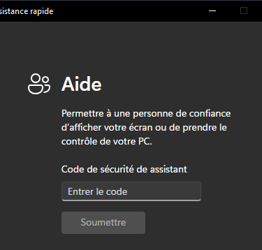 Afin de maitriser le coût de l'intervention, un dépannage sans déplacement peut être réalisé via "Assistance Rapide" inclus dans Windows.
